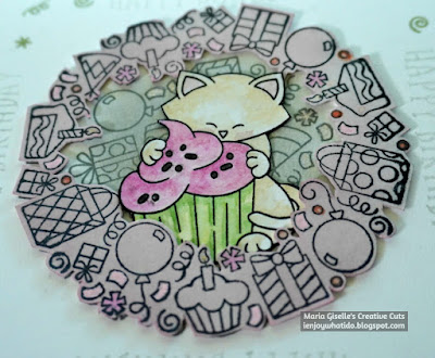I'm so glad that Inky Paws is one of your favorite challenges! We love seeing your creativity! As for this card, the kitten with his cupcake looks fabulous with the birthday roundabout image around him! Also like how you stamped the sentiment on all four sides of your card! Thanks so much for sharing with us at IPC!
