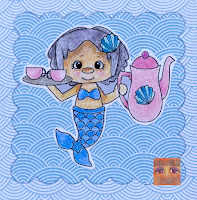 These mermaids from the Last Minute Manda are too hard to resist not to color. They are all stinking cute! I printed the images on a light weight white cardstock. I re-sized the images to fit the scalloped square included in the Lawn Fawn Flippin' Awesome die set. I used Prismacolor color pencils to color the images. I added accents to the colored images with glitter pens, gel pens, and metallic pens from my stash.